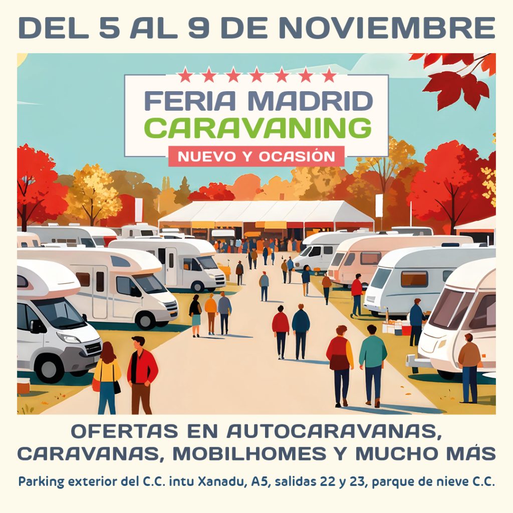 La XXV edición de la Feria Madrid Caravaning está a punto de abrir sus puertas. Del 5 al 9 de noviembre, el recinto exterior de intu Xanadú (junto a la entrada 4) se convertirá en el punto de encuentro de todos los aficionados al mundo del caravaning. Una cita imprescindible para descubrir las últimas novedades en autocaravanas, caravanas, campers y mobil homes.