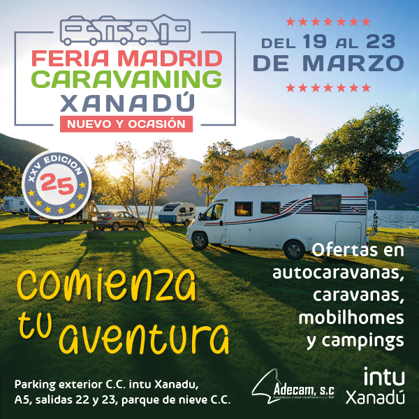 L’esperada XXV edició de la Fira Madrid Caravaning està a punt de començar. Del 19 al 23 de març, els amants del caravaning tindran l’oportunitat de conèixer de primera mà les últimes novetats en autocaravanes, caravanes, campers i mobil homes al pàrquing exterior d’intu Xanadú, a prop de l’entrada 4.